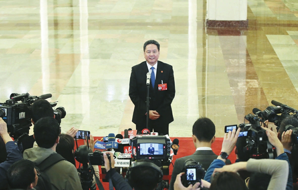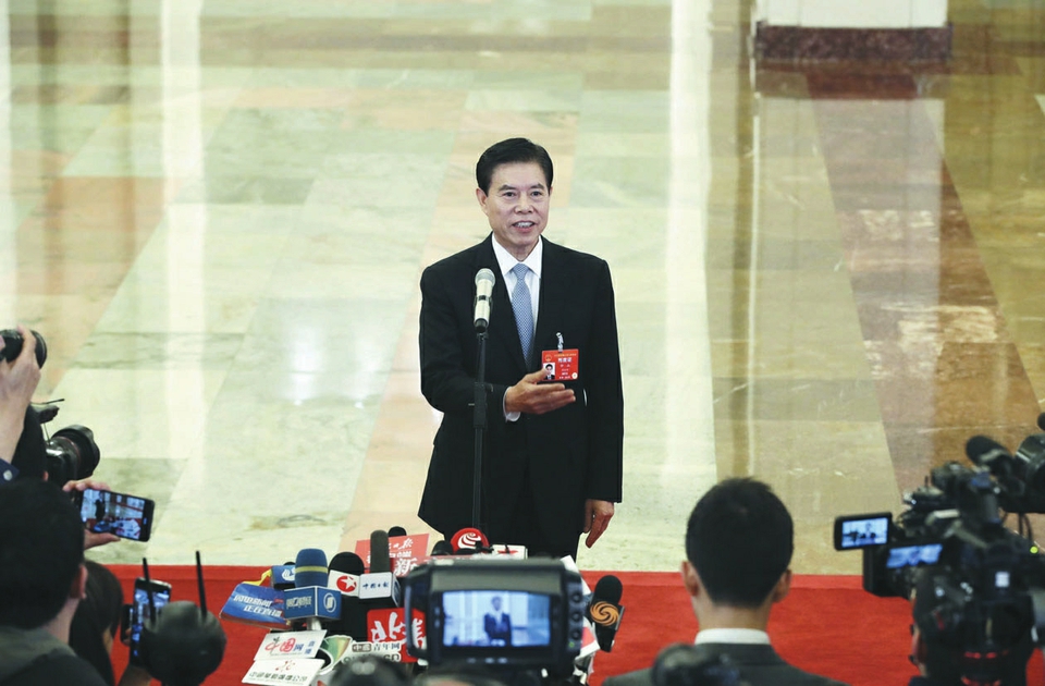 3月5日上午,十三屆全國人大二次會議開幕會結束后,第二場“部長通道”舉行。銀保監(jiān)會主席郭樹清、商務部部長鐘山、交通運輸部部長李小鵬、工信部部長苗圩、海關總署署長倪岳峰、國家市場監(jiān)管總局局長張茅、農業(yè)農村部部長韓長賦、國臺辦主任劉結一先后亮相,回應熱點問題。