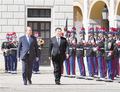 會(huì)談前,阿爾貝二世親王為習(xí)近平舉行隆重歡迎儀式。