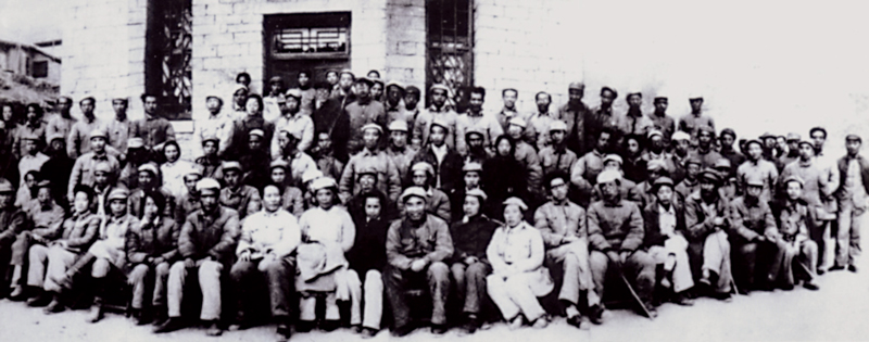 1942年5月2日至23日,在延安整風期間,毛澤東同志親自主持召開了有文藝工作者、中央各部門負責人共100多人參加的延安文藝座談會。圖為延安文藝座談會代表合影(吳印咸/攝)。