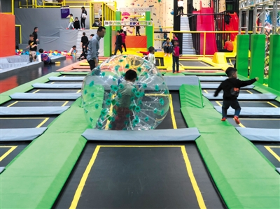 朝陽區(qū)東壩的一家蹦床樂園要求,入場的大人孩子都要簽一份安全協(xié)議。場地入口,貼著蹦床安全準(zhǔn)則,包含入場前熱身,嚴(yán)禁在床區(qū)追逐嬉戲打鬧,嚴(yán)禁攜帶尖銳物品等。蹦床場地內(nèi)有單個“教學(xué)區(qū)”,工作人員表示,沒課時,所有人在一起活動,不區(qū)分成人區(qū)和兒童區(qū)。