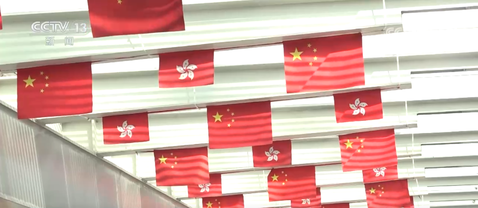 在香港的街頭巷尾,五星紅旗與紫荊花區(qū)旗迎風(fēng)飄揚(yáng),祝福標(biāo)語和慶祝海報(bào)處處可見,節(jié)日氣氛濃郁。