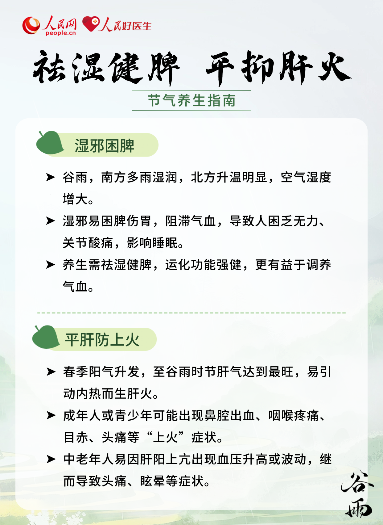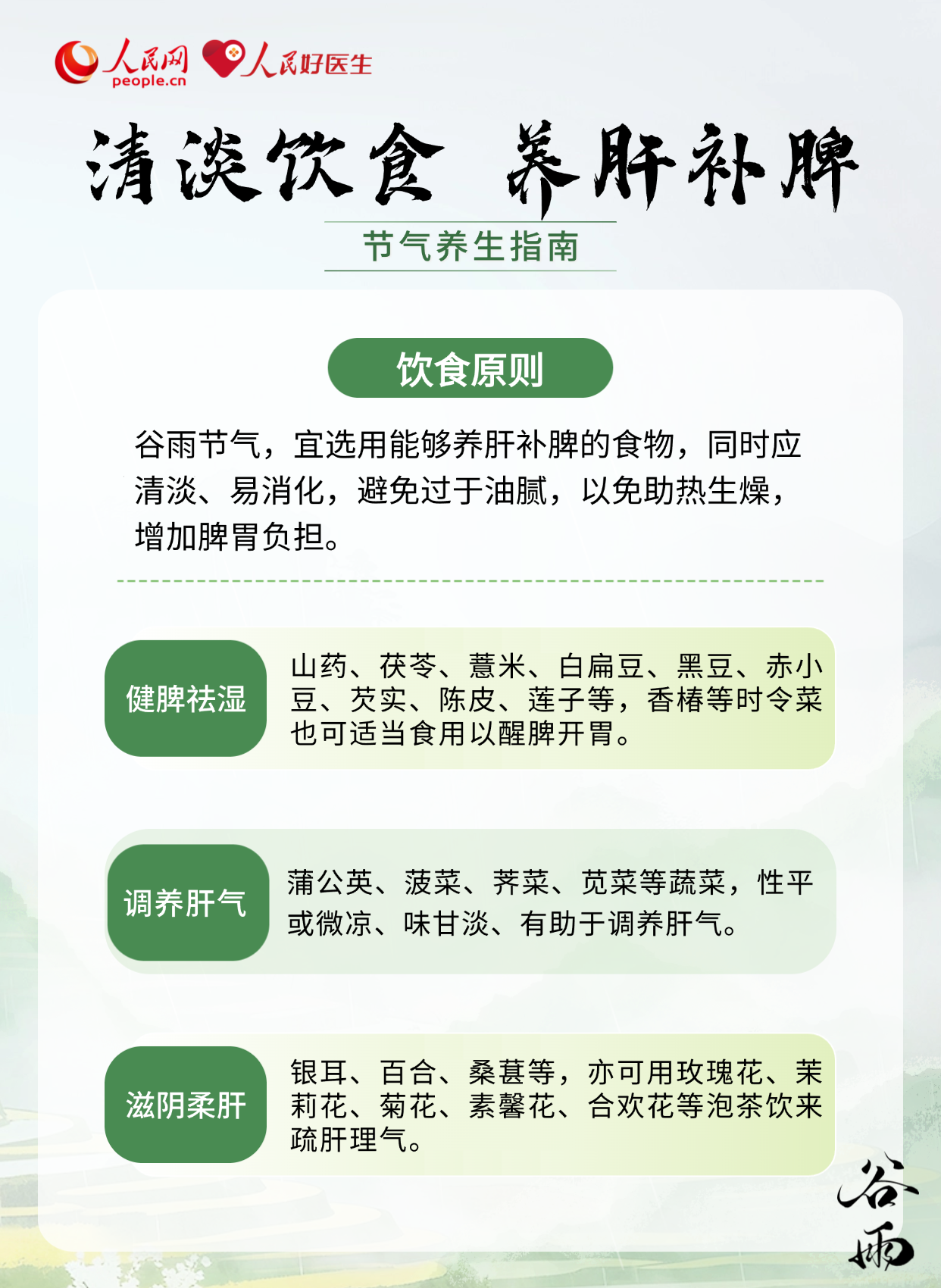 谷雨是春夏之交的關(guān)鍵轉(zhuǎn)折期,氣溫回升快、雨水增多,濕熱交織成為氣候主旋律。此時養(yǎng)生的核心在于健脾祛濕與柔肝防風,既要防范外濕入侵關(guān)節(jié)皮膚,也要疏解內(nèi)濕困脾上火。