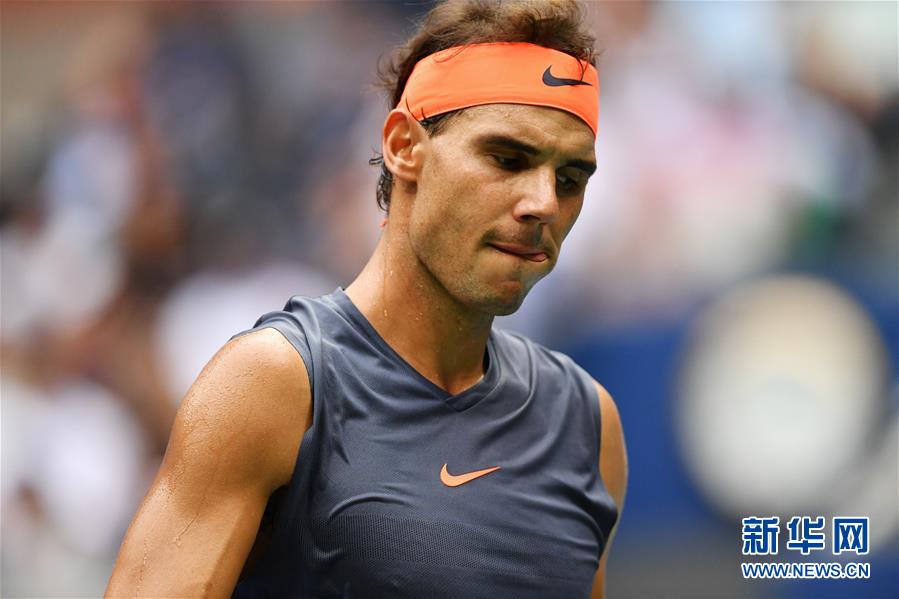 9月7日,納達(dá)爾在比賽中。 當(dāng)日,在2018美國(guó)網(wǎng)球公開賽男單半決賽中,西班牙選手納達(dá)爾在大比分0比2落后時(shí)因傷退賽,阿根廷選手德爾波特羅晉級(jí)決賽。 新華社記者劉杰攝