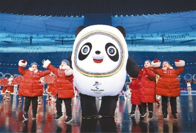 圖為演員與北京冬奧會(huì)吉祥物一起表演。新華社記者 許雅楠攝