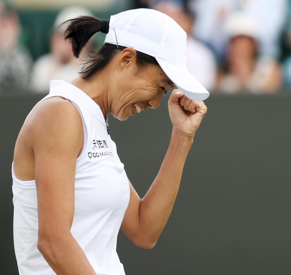 7月11日,張帥(左)/多勒海德在比賽后慶祝。新華社記者 李穎 攝
