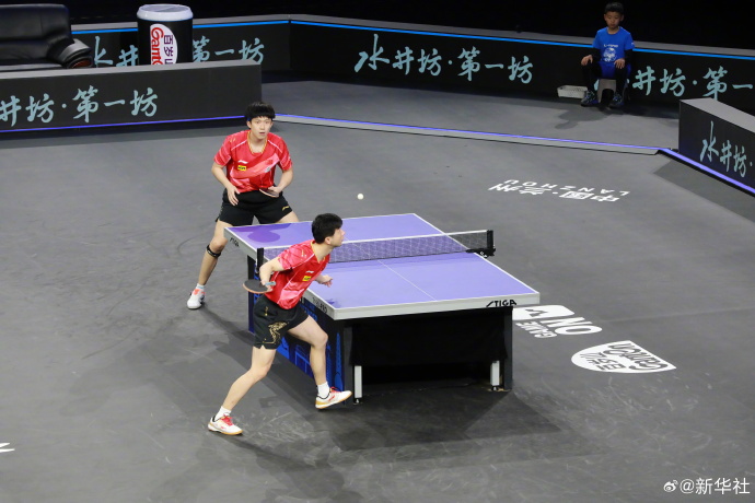 馬龍(下)和王楚欽在比賽中