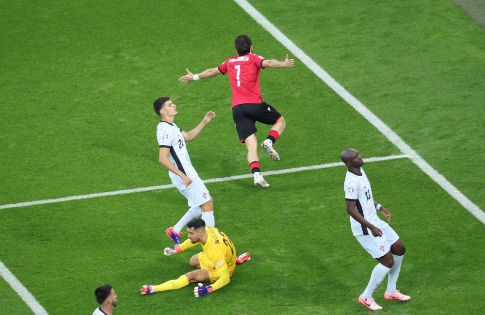 第57分鐘,席爾瓦再次出現(xiàn)致命失誤,在禁區(qū)內(nèi)踢人犯規(guī),主裁判經(jīng)視頻助理裁判(VAR)確認(rèn)判罰點(diǎn)球,米考塔澤將球罰進(jìn),格魯吉亞隊(duì)2:0鎖定勝局,隊(duì)史首次參加歐錦賽正賽就成功小組出線。
