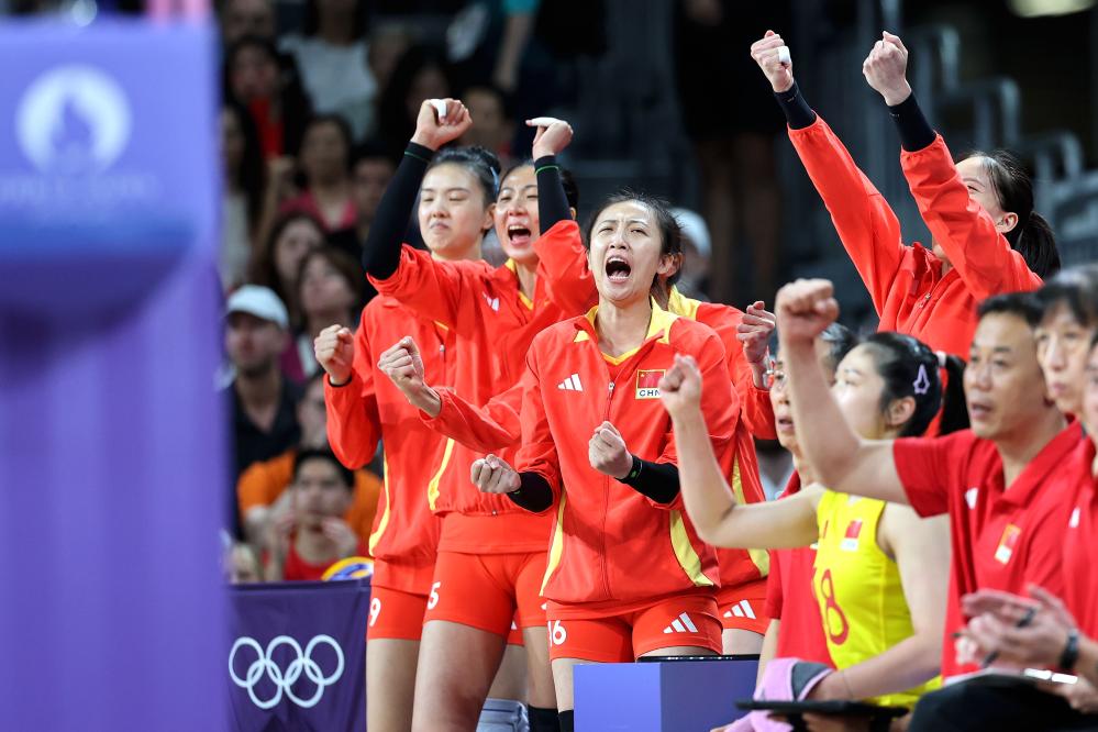 8月6日,中國隊隊員袁心玥(中)在巴黎奧運會女子排球四分之一決賽中。新華社記者 陳益宸 攝 令人感到欣慰的是,女子U系列國家隊戰(zhàn)績喜人。在匡琦率隊奪得U20女排亞錦賽冠軍后,趙勇又率隊獲得U17女排世錦賽冠軍,郭湘玲、李晨瑄等多名新人表現(xiàn)搶眼。較為深厚的人才儲備,讓人們對還將繼續(xù)爬坡的中國女排增添一份期待。