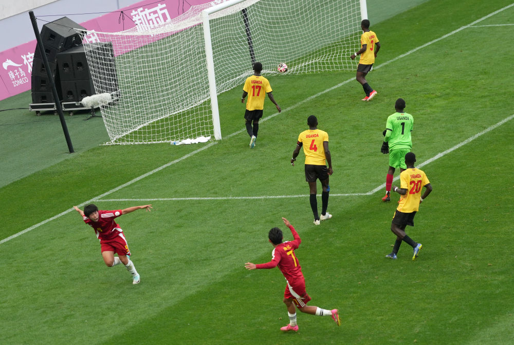 2024年5月26日,中國男子一隊(duì)球員劉誠宇(左一)慶祝進(jìn)球。當(dāng)日,2024年國際中體聯(lián)足球世界杯賽落幕。中國男子一隊(duì)和中國女子二隊(duì)分別戰(zhàn)勝烏干達(dá)男子一隊(duì)和肯尼亞女子隊(duì),雙雙奪冠。新華社記者 李鋼 攝