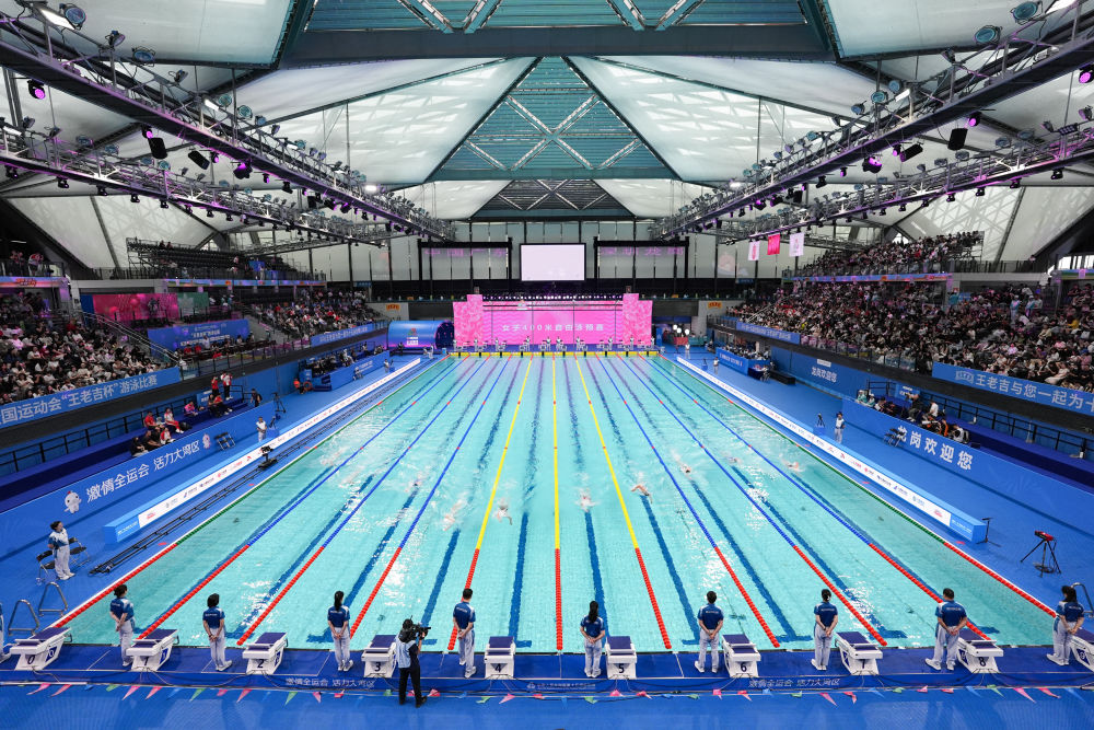 11月10日,參賽選手在女子400米自由泳預(yù)賽中。當(dāng)日,第十五屆全國(guó)運(yùn)動(dòng)會(huì)游泳項(xiàng)目在深圳拉開帷幕。新華社記者 夏一方 攝