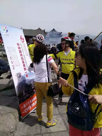 5月19日,在第六個(gè)“中國(guó)旅游日”,共青團(tuán)五臺(tái)縣委組織20余名青年騎行愛(ài)好者,騎著單車(chē)來(lái)到五臺(tái)山核心景區(qū),拉起宣傳畫(huà),耐心向來(lái)山游客講解投票方法,動(dòng)員廣大游客為忻州申辦山西旅游發(fā)展大會(huì)投下寶貴一票。(劉力強(qiáng) 攝)