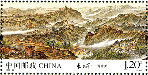 中國萬里長城是世界上修建時間最長、工程量最大的冷兵器戰(zhàn)爭時代的國家軍事性防御工程,是中華民族的古建瑰寶,凝聚著我們祖先的血汗和智慧,是中華民族的象征和驕傲。長城有極高的旅游觀光價值和歷史文化意義,是中華民族古老文化的豐碑和智慧結(jié)晶,象征著中華民族的血脈相承和民族精神。1961年,長城被列為國家級重點文物保護(hù)單位,1987年,被列為世界文化遺產(chǎn),2002年,被列為世界新七大奇跡。1984年,鄧小平、習(xí)仲勛作出“愛我中華,修我長城”的題詞,2006年,國務(wù)院頒布了《長城保護(hù)條例》。2015年,習(xí)近平總書記、李克強(qiáng)總理對長城保護(hù)工作作出了重要批示。今年,為紀(jì)念《長城保護(hù)條例》頒布10周年,中國郵政專門發(fā)行了《長城》特種郵票,一套九枚,分別為:關(guān)山滄海、薊遼天塹、燕趙雄風(fēng)、京畿屏障、三晉重關(guān)、長河飛龍、高原北望、大漠關(guān)城、絲路古道,總面值13.2元。全套9枚郵票中,山西有兩枚長城郵票。第5枚“三晉重關(guān)”、第6枚“長河飛龍”展現(xiàn)了山西十幾處長城景點,成為全國境內(nèi)長城入選最多的省份。長城景點濃縮方寸郵票之中,姿態(tài)萬千,各具特色。郵票色彩豐富,設(shè)計精美,充分體現(xiàn)出了長城的雄偉壯觀。