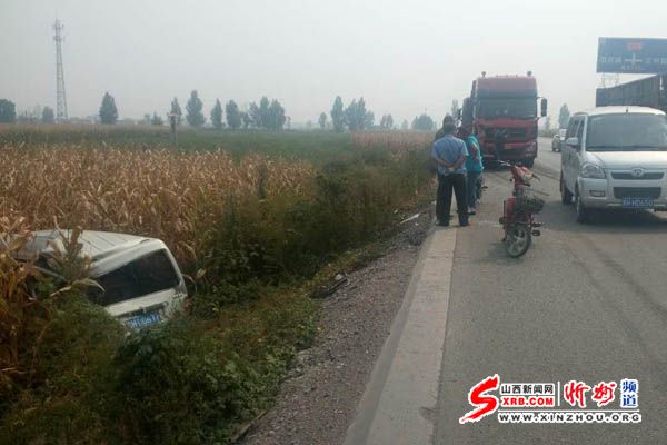 忻州:一面包車(chē)路邊停放被撞進(jìn)溝渠