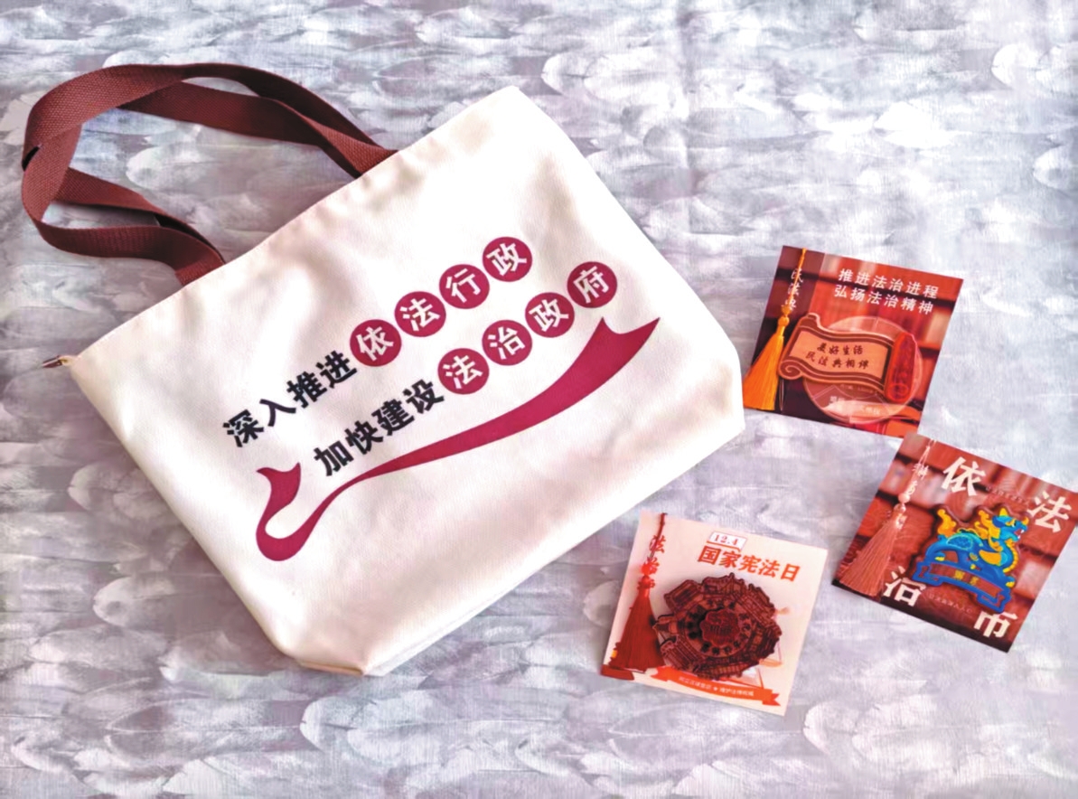 行走的法治與非遺宣傳:帆布包上的流動風(fēng)景線。除木雕冰箱貼外,帆布袋成為“普法+非遺”系列文創(chuàng)產(chǎn)品的一大亮點。雙面印有宣傳圖案,正面“依法行政”“法治政府”主題鮮明,背面則是忻州非遺與景點交織圖,靜樂剪紙、撓羊賽、北路梆子等非遺元素與忻州古城、五臺山等景點相互輝映,構(gòu)成生動文化圖卷,讓群眾沉浸于法治“文化味”與非遺“煙火氣”。