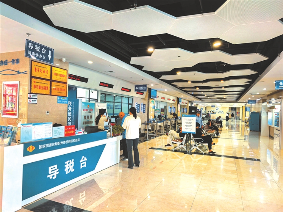 市政務(wù)大廳一樓稅務(wù)專區(qū)導(dǎo)稅臺(tái)不僅是稅務(wù)綜合服務(wù)前臺(tái),還是10項(xiàng)簡事快辦服務(wù)臺(tái)。