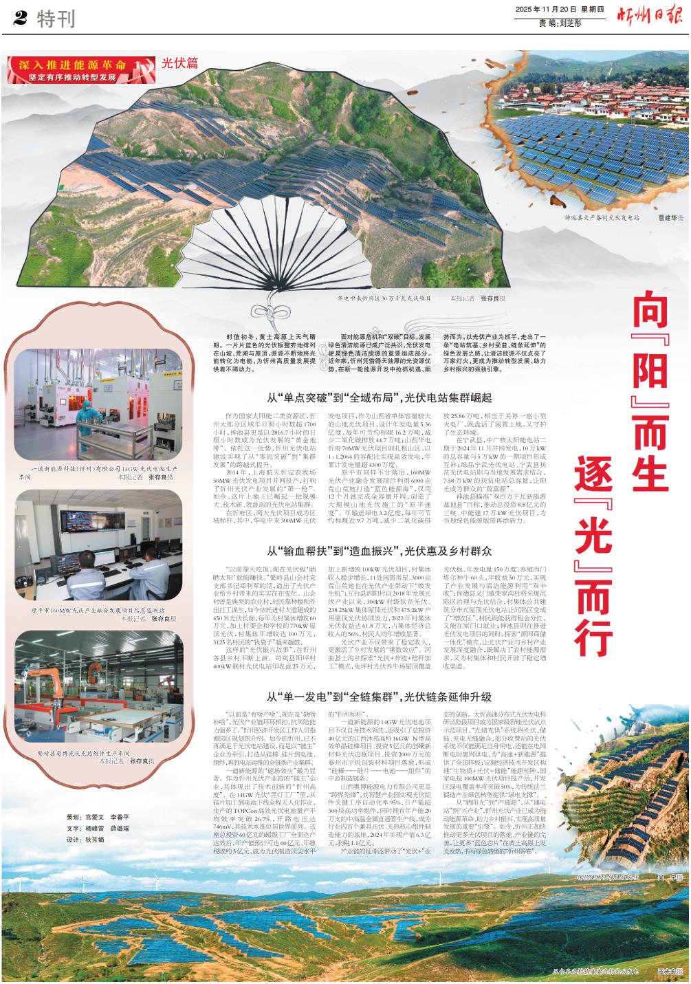 在寧武縣,中廣核太陽能電站二期于2024年11月并網(wǎng)發(fā)電,10萬kW的總?cè)萘颗c5萬kW的一期項目形成互補(bǔ);爍晶寧武光伏電站、寧武縣扶貧光伏電站則與當(dāng)?shù)匕l(fā)展需求結(jié)合,7.58萬kW的扶貧電站總?cè)萘?,讓陽光成為群眾的“致富源”?/p>