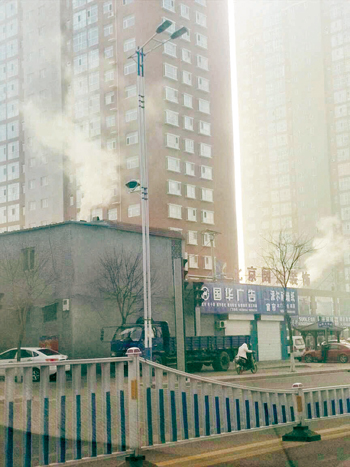 城區(qū)云中路瑞新裝飾城對(duì)面,有兩個(gè)煙囪冒煙,污染環(huán)境。城區(qū)七一路臨街一酒店樓頂有煙不斷冒出,而且味道嗆人。希望商戶(hù)或住戶(hù)配合治理,共同營(yíng)造碧水藍(lán)天的良好環(huán)境。12月9日網(wǎng)友攝