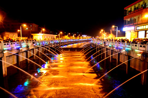 10月1日,國(guó)慶節(jié),代縣縣城關(guān)溝河景觀工程正式竣工蓄水。河道中,兩道鋼閘壩內(nèi),清清的河水碧波蕩漾,河道兩岸是兩條6米寬的景觀大道。道路內(nèi)側(cè),路燈成行,綠樹成蔭,風(fēng)光如畫。伴隨著優(yōu)美的樂曲,河道兩側(cè)的音樂噴泉噴珠吐玉,不斷變化著造型,在金色的陽(yáng)光下不時(shí)閃現(xiàn)出道道彩虹。到了夜間,音樂噴泉在明亮的燈光映襯下,更是五彩繽紛,赤橙黃綠青藍(lán)紫,猶如彩練當(dāng)空舞。成為歷史文化名城一道亮麗的風(fēng)景。
