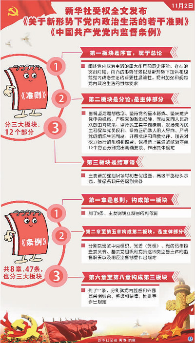 全面從嚴(yán)治黨,是歷史交給當(dāng)代中國共產(chǎn)黨人的重大課題,也是黨的十八大以來黨中央抓黨的建設(shè)的鮮明主題。包括全面從嚴(yán)治黨在內(nèi)的“四個全面”戰(zhàn)略布局,是以習(xí)近平為核心的黨中央確定的治國理政新方略。隨著這次《準(zhǔn)則》和《條例》的正式施行,全面從嚴(yán)治黨掀開嶄新一頁,治國理政邁入新征程。