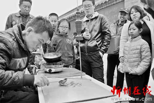4月4日,在原平市天牙山風(fēng)景區(qū)一位農(nóng)民正在制作糖人。當日是清明節(jié),不少游人紛紛走出家門踏青賞花,有許多人圍在農(nóng)民身邊要求買糖人,這位農(nóng)民制作糖人手法熟練,既豐富了景區(qū)市場,又增加了個人收入。 褚震 攝