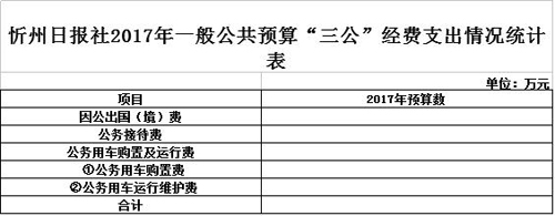 忻州日?qǐng)?bào)社2017年度部門預(yù)算及“三公”經(jīng)費(fèi)預(yù)算公開情況