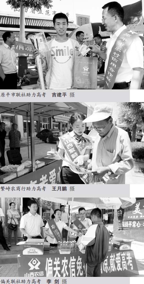 活動期間,我市各級農(nóng)信社紛紛在考點(diǎn)門前設(shè)立“農(nóng)信助考點(diǎn)”,為廣大考生及家長免費(fèi)提供休息場地,準(zhǔn)備礦泉水、小面包、雪糕、冷飲等防暑降溫愛心食品和紙、筆、充電寶、急救藥品等應(yīng)急用品,為考生提供不備之需。在服務(wù)場所,發(fā)放精美宣傳折頁,推介農(nóng)信社的金融產(chǎn)品和服務(wù),提醒考生和家長考試期間的注意事項(xiàng),鼓勵考生放松心態(tài),積極應(yīng)考;為候考家長現(xiàn)場講解銀行卡、網(wǎng)銀、手機(jī)銀行等知識,緩解焦急等待的心情,構(gòu)成了一道靚麗的愛心助考風(fēng)景線。(郎培?。?/p>