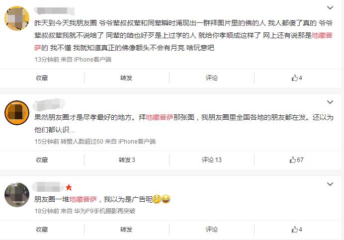 社交媒體上的瘋狂轉(zhuǎn)發(fā)之風(fēng)也引起了一些網(wǎng)友的不適,有網(wǎng)友評論:都孝順成這樣了,還說那是地藏菩薩,佛像額頭有月亮?
