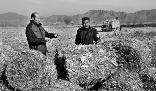 入冬以來,五臺(tái)縣委、縣政府組織有關(guān)單位深入到田間地頭,宣傳《五臺(tái)縣環(huán)境保護(hù)局大氣污染防治規(guī)則》和《五臺(tái)縣畜牧局秸稈深加工實(shí)施辦法》,面對(duì)面給農(nóng)民講解燒秸稈污染空氣和打包秸稈喂牛的好處。東寨村養(yǎng)牛大戶閆忠海高興地說:“你們這樣解釋,咱懂?!h(huán)保+飼料’咱農(nóng)民記得牢。我已在7個(gè)村打包秸稈7200畝,保證不燒一根,全部喂牛”。圖為田間清理、加工秸稈。金俊賢 攝