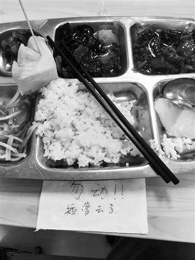 之所以要選擇這樣的方式,他解釋,因為當(dāng)時餐廳里沒有其他同科同事,而且麻煩他人一直守著自己的餐盤也不可能,所以就希望留下紙條提示食堂工作人員不要收他的餐盤。而在去年,欒遠航就曾遇到過一次臨時離開,餐盤被收走的尷尬?!昂髞聿骞芎茼樌畈欢?0分鐘我就回來了,餐盤也沒被收走?!?欒遠航說。