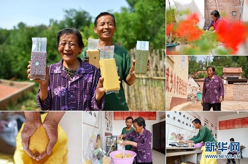張成華,女,1949年出生,山西省長治市武鄉(xiāng)縣嶺頭村人。近年來,嶺頭村在縣里有關(guān)部門的扶持下,對村民開展電商培訓(xùn)。村民們嘗試著在手機(jī)上“開店”,把小米、核桃、綠豆等農(nóng)產(chǎn)品在網(wǎng)絡(luò)上售賣。張成華的兒子魏寶玉開了網(wǎng)店后,自家的農(nóng)產(chǎn)品在網(wǎng)上銷售良好,家庭收入明顯增加。 左上:張成華(前)和兒子魏寶玉展示自家種的農(nóng)產(chǎn)品;右上:張成華在家中院子里收拾;右中:張成華走在村里的路上;右下:張成華的兒子魏寶玉將準(zhǔn)備發(fā)貨的農(nóng)產(chǎn)品進(jìn)行稱重;下中:張成華(前)將小米裝袋;下左:張成華在查看小米質(zhì)量(拼版照片,6月12日攝)。 地處晉東南的山西省長治市,位于由太行山、太岳山環(huán)繞而成的上黨盆地中。在群山中、崖壁上,許多村莊自然條件惡劣,基礎(chǔ)設(shè)施落后,脫貧致富是大山深處人們的迫切心愿。 近年來,一場場脫貧攻堅戰(zhàn),在一個個深山村打響。政府全力探索脫貧路徑的同時,山區(qū)百姓因地制宜,靠自己的雙手和智慧走上致富路,交出了一份扎實(shí)的脫貧答卷。 記者在太行山、太岳山一路尋訪,記錄下多位70歲老人的生活。這些共和國的同齡人,親歷了山鄉(xiāng)的巨變,見證著長治山區(qū)脫貧攻堅偉大工程的一步步推進(jìn)。 新華社記者 詹彥 攝