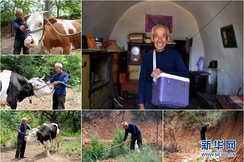 曹晉忠,男,1949年出生,山西省長(zhǎng)治市武鄉(xiāng)縣鋪上村人。曹晉忠是村里的動(dòng)物防疫員,自己種了4畝玉米、2畝小米。因?yàn)槠拮映D昱P病在床,曹晉忠一家是該村的精準(zhǔn)扶貧對(duì)象。曹晉忠說(shuō),醫(yī)護(hù)人員經(jīng)常上門進(jìn)行健康狀況隨訪,駐村工作隊(duì)也常來(lái)家里幫忙,現(xiàn)在看病不發(fā)愁,干活有人幫,生活挺好的。 右上:曹晉忠肖像;左上、左中、左下:曹晉忠在給村里的牛做檢查;下中、下右:曹晉忠在地里干農(nóng)活(拼版照片,6月12日攝)。 地處晉東南的山西省長(zhǎng)治市,位于由太行山、太岳山環(huán)繞而成的上黨盆地中。在群山中、崖壁上,許多村莊自然條件惡劣,基礎(chǔ)設(shè)施落后,脫貧致富是大山深處人們的迫切心愿。 近年來(lái),一場(chǎng)場(chǎng)脫貧攻堅(jiān)戰(zhàn),在一個(gè)個(gè)深山村打響。政府全力探索脫貧路徑的同時(shí),山區(qū)百姓因地制宜,靠自己的雙手和智慧走上致富路,交出了一份扎實(shí)的脫貧答卷。 記者在太行山、太岳山一路尋訪,記錄下多位70歲老人的生活。這些共和國(guó)的同齡人,親歷了山鄉(xiāng)的巨變,見證著長(zhǎng)治山區(qū)脫貧攻堅(jiān)偉大工程的一步步推進(jìn)。 新華社記者 詹彥 攝