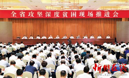 山西日?qǐng)?bào)訊(記者尚慧輝)6月19日,省委在忻州召開全省攻堅(jiān)深度貧困現(xiàn)場推進(jìn)會(huì),也是省委中心組擴(kuò)大的專題學(xué)習(xí)會(huì)。會(huì)議以習(xí)近平扶貧思想為指導(dǎo),分析一年來全省攻堅(jiān)深度貧困形勢,堅(jiān)持目標(biāo)和問題導(dǎo)向,激勵(lì)干部更好擔(dān)當(dāng)作為,強(qiáng)化精準(zhǔn)用力舉措,下足繡花功夫,為堅(jiān)決打贏脫貧攻堅(jiān)戰(zhàn)奠定扎實(shí)基礎(chǔ)。省委書記駱惠寧出席會(huì)議并講話,他強(qiáng)調(diào),要認(rèn)真學(xué)習(xí)貫徹習(xí)近平總書記對(duì)打贏脫貧攻堅(jiān)戰(zhàn)三年行動(dòng)的重要指示,按照中央指導(dǎo)意見及省委部署,咬定總攻目標(biāo),落細(xì)攻擊點(diǎn)位,完善督戰(zhàn)機(jī)制,奪取戰(zhàn)役全勝。打贏三年脫貧攻堅(jiān)戰(zhàn),必須牢牢抓住主要矛盾、聚焦深度貧困,做到焦點(diǎn)不散、靶心不變,持續(xù)用力、盡銳出戰(zhàn),以攻堅(jiān)深度貧困帶動(dòng)面上扶貧工作。國務(wù)院扶貧開發(fā)領(lǐng)導(dǎo)小組副組長、國務(wù)院扶貧辦主任劉永富出席會(huì)議并講話。省委副書記、省長樓陽生主持會(huì)議。