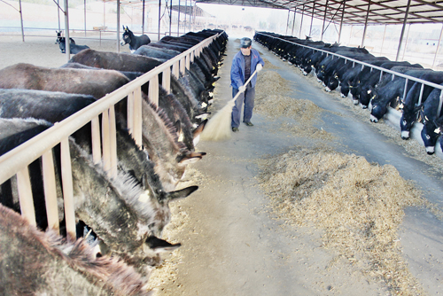 原平市桃園牧業(yè)合作社收存秸稈,加工成飼料,既節(jié)約了成本,又保護(hù)了環(huán)境。