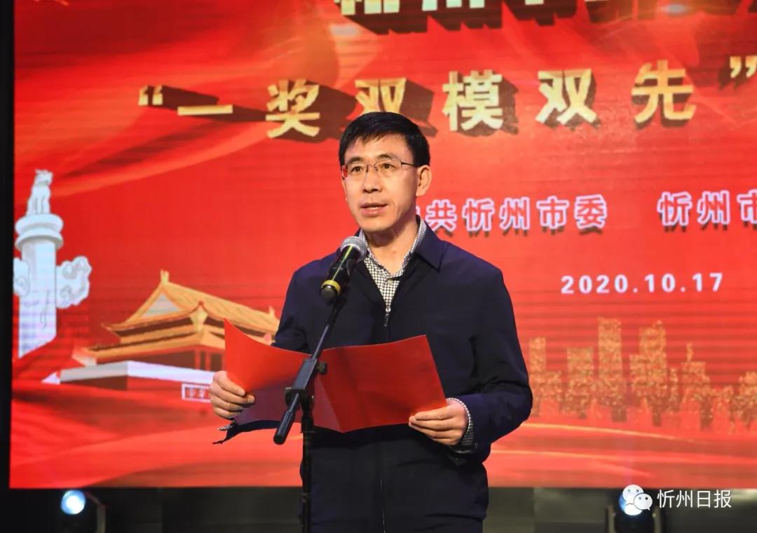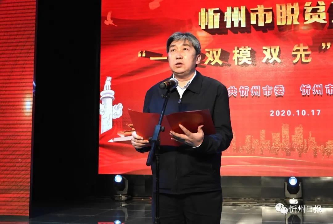 秦書(shū)義宣讀《中共忻州市委忻州市人民政府〈關(guān)于表彰2020年忻州市脫貧攻堅(jiān)“一獎(jiǎng)雙模雙先”的決定〉》。劉紀(jì)森攝