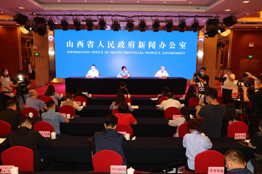 朱曉東介紹忻州市承辦大會相關(guān)情況,公布大會標(biāo)識、海報(bào)和亮點(diǎn)活動,并回答記者提問。范濤攝