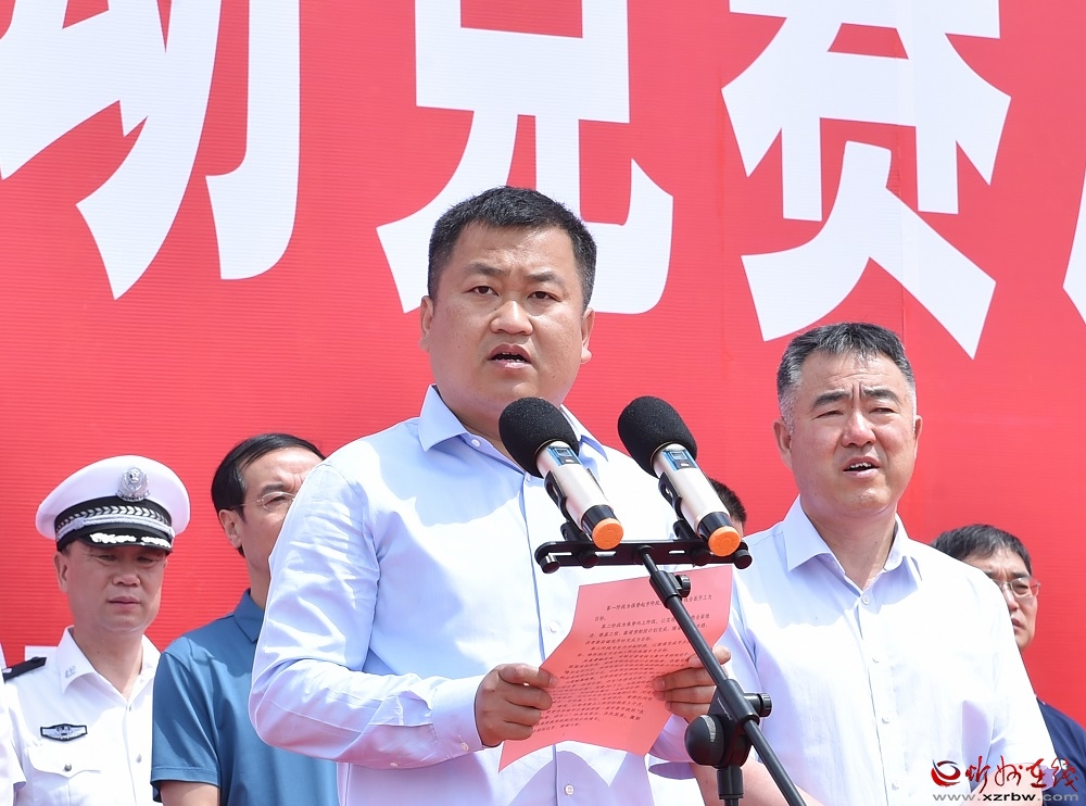 朱曉東宣布勞動競賽正式啟動。馮曉磊 攝 李建國指出,太忻、忻原、東環(huán)路建設(shè)項目是市委、市政府深入貫徹落實省委“一群兩區(qū)三圈”城鄉(xiāng)區(qū)域發(fā)展新布局,推動太忻一體化經(jīng)濟區(qū)建設(shè)強勢起步的重要舉措。為加快推進工程建設(shè),市委、市政府決定開展2022年太忻、忻原、東環(huán)路建設(shè)項目勞動競賽,強化各參建單位的榮譽感、責(zé)任感、使命感,激發(fā)廣大參建人員開拓創(chuàng)新的干勁和攻堅克難的勇氣,一鼓作氣、乘勢而上,確保太忻大道、忻原大道、東環(huán)路在國慶節(jié)前如期通車,以實際行動迎接黨的二十大勝利召開。