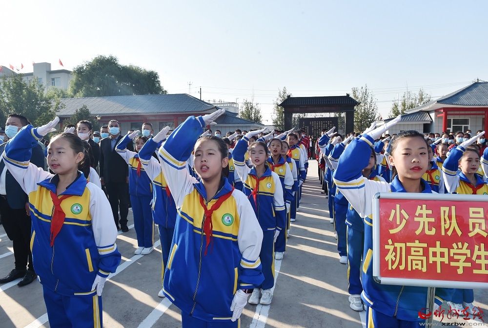 少先隊(duì)員合唱《我們是共產(chǎn)主義接班人》。馮曉磊 攝