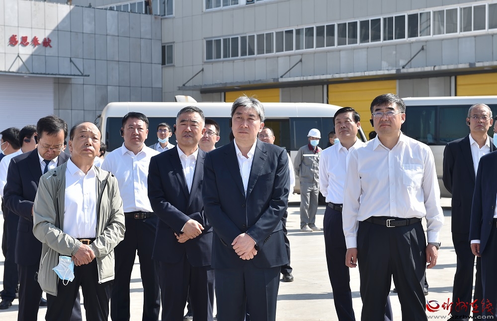 在山西宏厚建筑科技有限公司觀摩檢查建筑固廢回收利用制水穩(wěn)層拌合料及混凝土加工生產(chǎn)線項目、鋼結(jié)構(gòu)裝配式建筑生產(chǎn)線項目建設(shè)情況。馮曉磊 攝