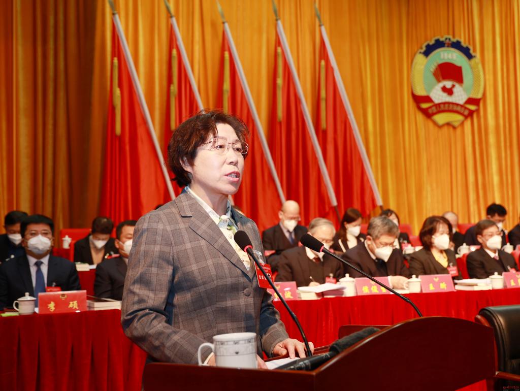 王海英向大會作提案工作情況報告。張存良 攝