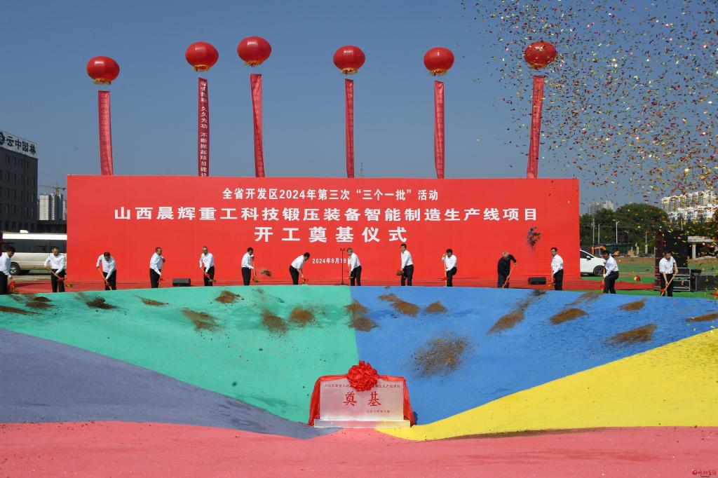 活動期間,與會人員共同為“開工一批”重點(diǎn)項(xiàng)目——山西晨輝重工科技鍛壓裝備智能制造生產(chǎn)線項(xiàng)目培土奠基,現(xiàn)場觀摩了“投產(chǎn)一批”重點(diǎn)項(xiàng)目——一道新能源(忻州)有限公司14GW光伏電池生產(chǎn)基地項(xiàng)目。(張曄)