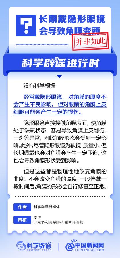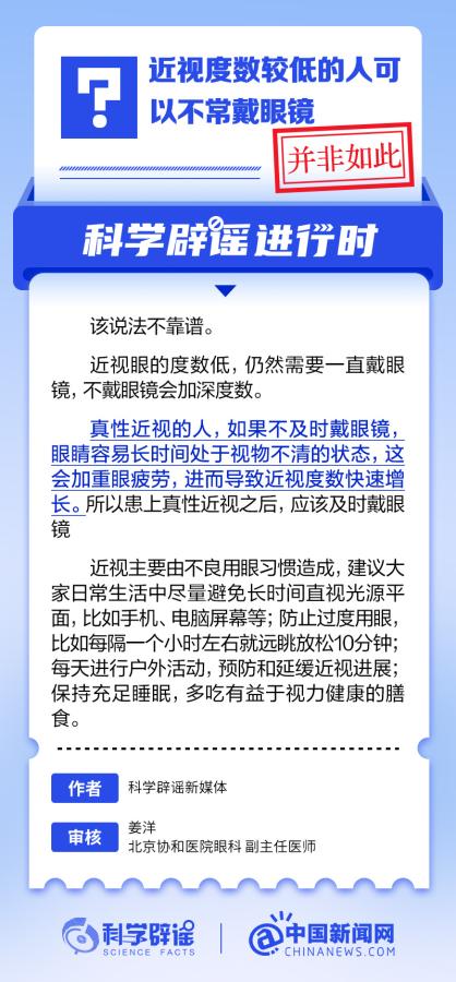 中新網(wǎng)6月6日電 6月6日是全國愛眼日。隨著大家越來越重視護(hù)眼,人們開始自發(fā)地從網(wǎng)上查找一些護(hù)眼知識(shí),與此同時(shí),網(wǎng)上也出現(xiàn)了很多的護(hù)眼誤區(qū)。有哪些常見的所謂“護(hù)眼知識(shí)”其實(shí)是誤區(qū)?眼鏡度數(shù)配高點(diǎn)好還是配低點(diǎn)好?詳情↓ (來源:@科學(xué)辟謠 中國新聞網(wǎng)微博)