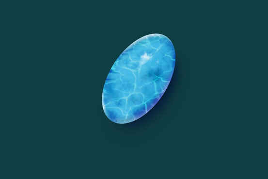 海紋石“石如其名”,有著和蔚藍(lán)大海一樣的顏色,其中藍(lán)綠色夾白色的形態(tài)就像海上的朵朵浪花。從礦物學(xué)的角度來(lái)說(shuō),它實(shí)際上是藍(lán)色針鈉鈣石的塊狀集合體。目前的研究認(rèn)為,海紋石的藍(lán)色部分和白色的紋路部分的礦物成分相同,均含有針鈉鈣石。其中藍(lán)色部分完全由針鈉鈣石組成,而白色部分由針鈉鈣石、方解石兩種礦物構(gòu)成,每種礦物顆粒均是微米級(jí)別。嚴(yán)格來(lái)說(shuō),海紋石屬于針鈉鈣石的含銅變種,它的藍(lán)色得益于銅、鉻、釩等過(guò)渡元素,其中銅為主要的致色元素。