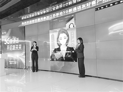 “5G新通話”友好客戶招募活動現場,工作人員演示5G新通話創(chuàng)新應用。記者 金鳳攝