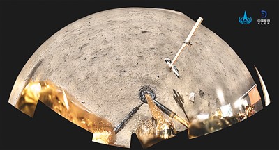 嫦娥五號探測器在月球表面展示國旗。新華社發(fā)