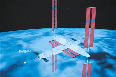 天舟七號(hào)貨運(yùn)飛船與空間站組合體進(jìn)行交會(huì)對(duì)接的模擬圖像。新華社發(fā)