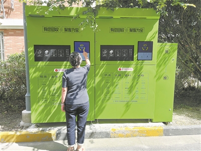 上海市民在使用智能分類回收機(jī)。