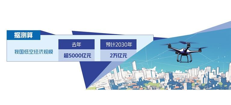 目前,以傳統(tǒng)通用航空和新型無人機(jī)產(chǎn)業(yè)為基礎(chǔ)的低空經(jīng)濟(jì)在我國正蓬勃發(fā)展。截至2023年底,我國通航企業(yè)達(dá)689家,通用機(jī)場451個。據(jù)測算,去年我國低空經(jīng)濟(jì)規(guī)模超5000億元,預(yù)計2030年有望達(dá)到2萬億元。