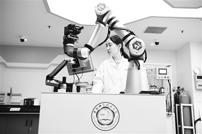中國(guó)科學(xué)技術(shù)大學(xué)一名博士研究生在實(shí)驗(yàn)室調(diào)試機(jī)器化學(xué)家系統(tǒng)“小來(lái)”。新華社記者 張端攝