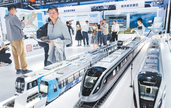 昨天,觀眾在北京創(chuàng)新產(chǎn)業(yè)集群示范區(qū)(順義)展區(qū)參觀。北京日?qǐng)?bào)記者 和冠欣攝