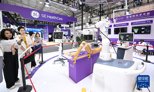 9月9日,參觀者在服貿(mào)會(huì)展廳參觀“數(shù)智骨科手術(shù)室”。新華社發(fā)